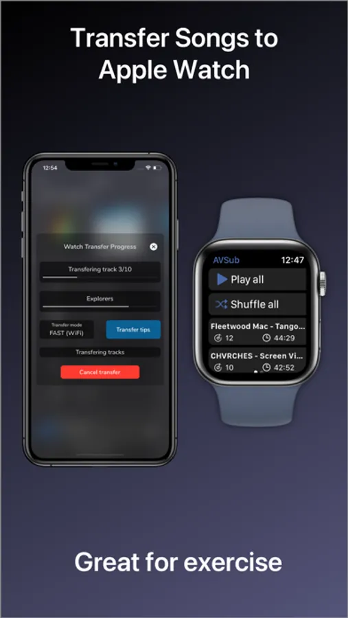 The AVSub Apple Watch extension is the easiest way to get your Subsonic playlists onto your watch. The extension supports full background playback. You can take your music with you even without your phone!
