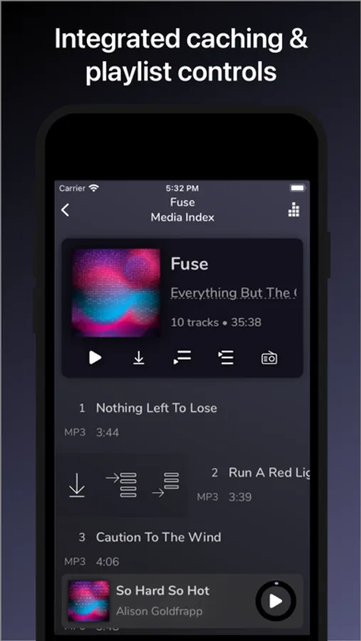 AVSub supports caching so you can listen to your music or watch video even when you're not connected to the Internet. AVSub will intelligently cache what you listen to in the background, or you can choose to download tracks, albums or videos direct to the cache for quick pre-loading. Cache size is configurable, along with options such as cache reading & writing and the ability to control direct-downloading over a mobile/cellular network.