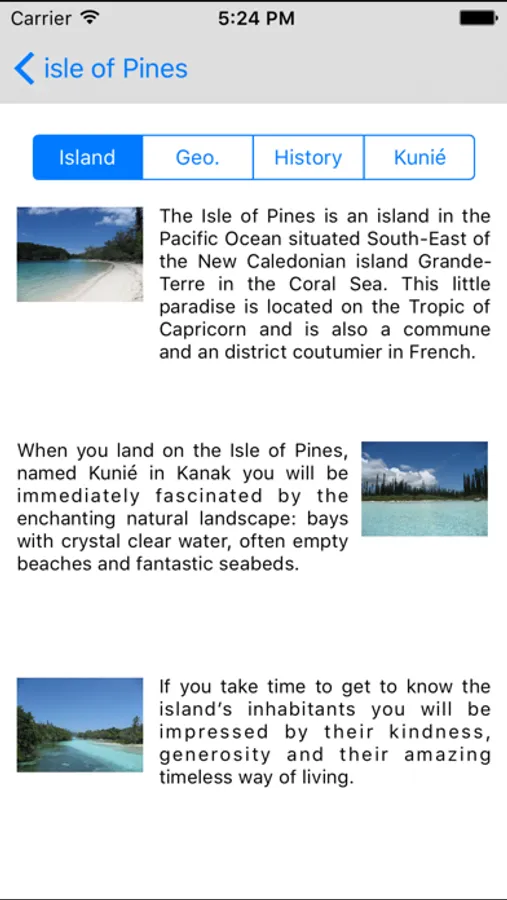 The « Isle of Pines » application is a multimedia guide of all activities, accommodations and shops on the island.