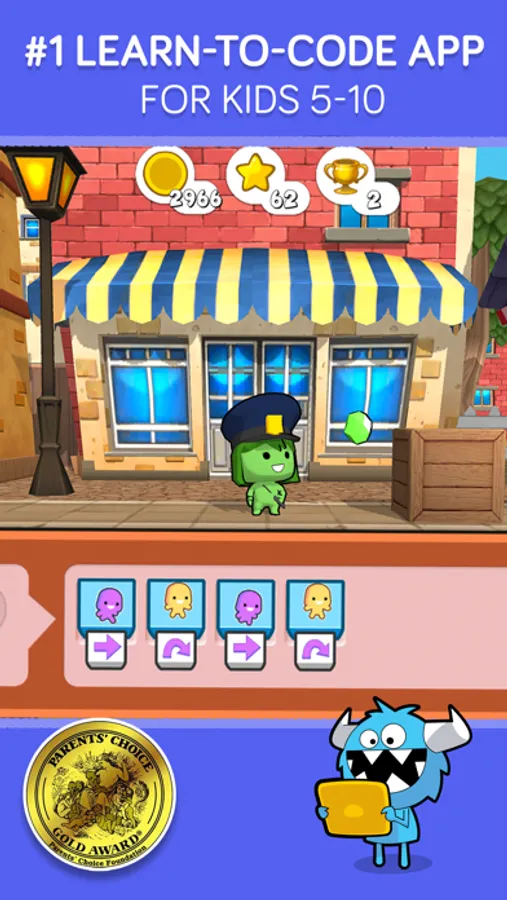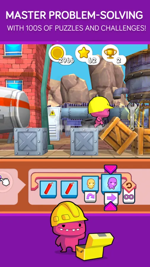 Our word-free interface allows anyone, anywhere to play and is perfect for beginner coders and pre-readers. Kids will master core computer science concepts such as pattern recognition, problem solving, sequencing, algorithmic thinking, debugging, loops and conditionals.