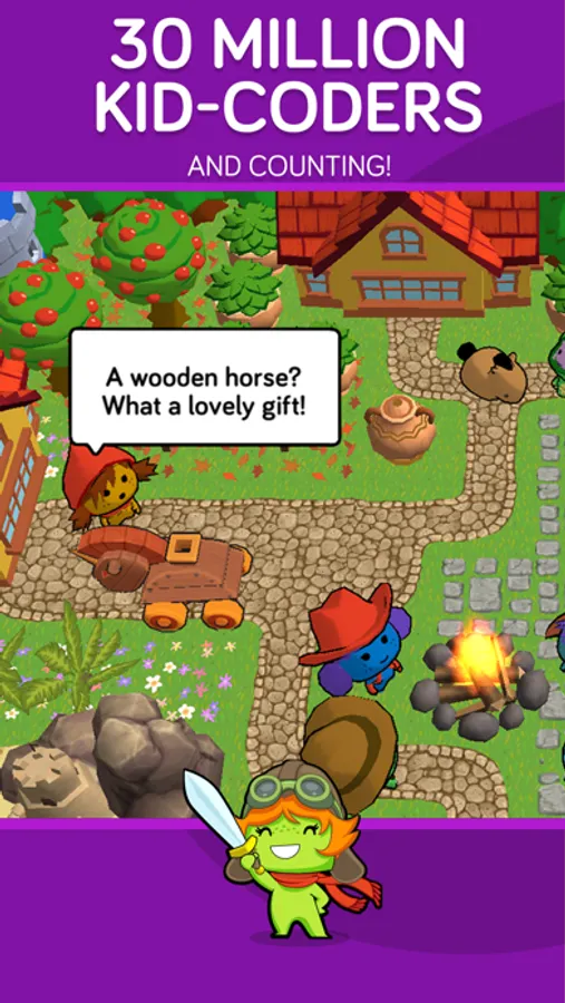 Combine storytelling and game design to create unique games and stories in a fantasy setting for other kid coders to play.
