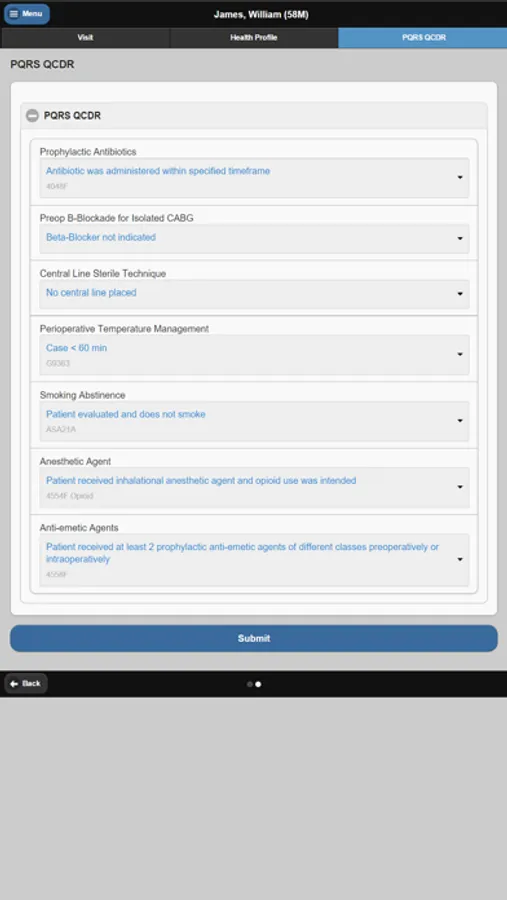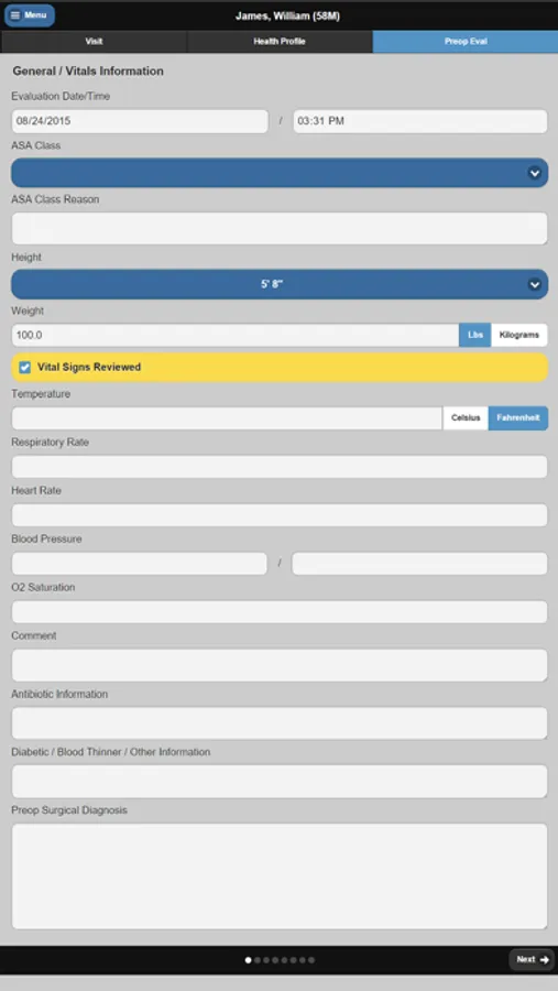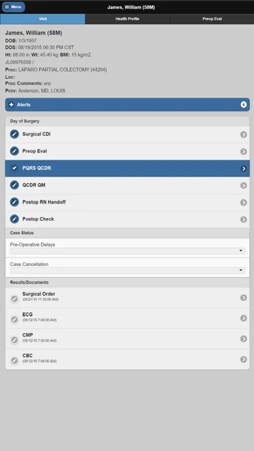 - Preoperative Evaluation - Complete your Preop Eval on nearly any device, in less time than current paper workflows. The documentation process is customizable and includes Meaningful Use data capture that can be exported in one standard process, eliminating double documentation requirements. The system works with most HIS and AIMS platforms. An integrated patient portal is also provided that eliminates documentation time requirements.