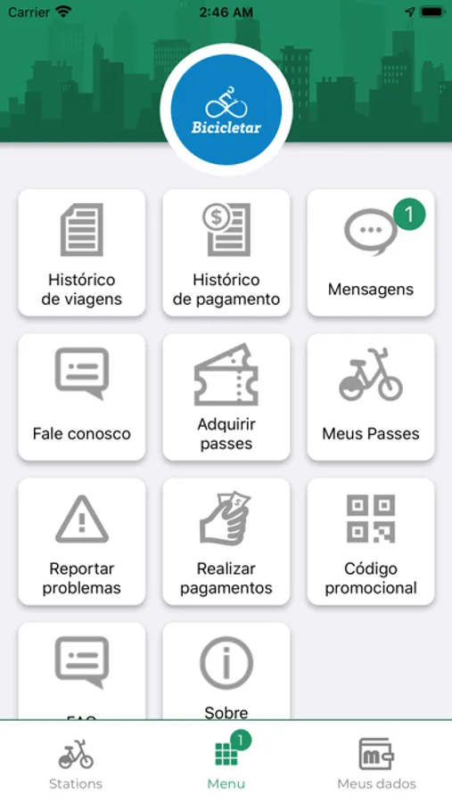 Com ele você pode se cadastrar, adquirir passes de utilização, retirar bicicletas das estações, localizar estações, dentre outras ações.