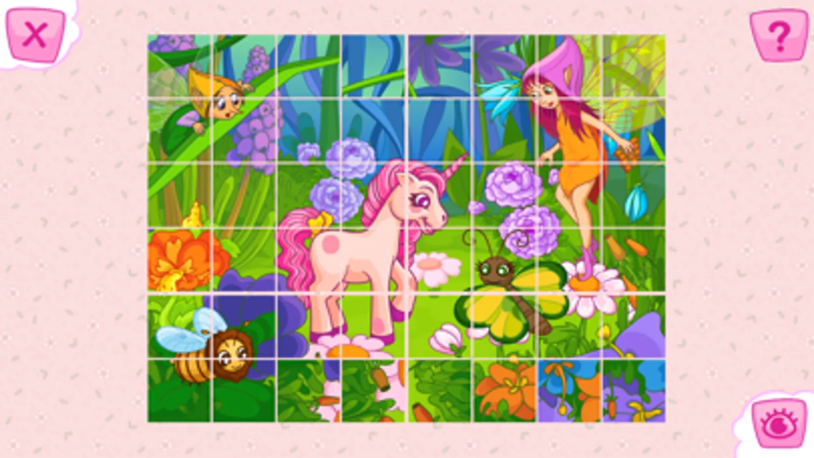 Puzzle game for girls 4 years old and up. You will find elves, gnomes, unicorns, fairies and other fantasy creatures. All pictures in the game are bright and colorful.