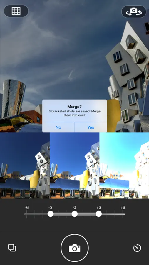 AutoBracket brings to iPhone/iPad the “auto-bracketing” feature previously only seen in high-end DSLR cameras! You can shoot 3 photos in rapid succession, each at a different exposure compensation. This allows you to shoot now and choose the best exposure later, or to merge the 3 photos into one HDR photo.