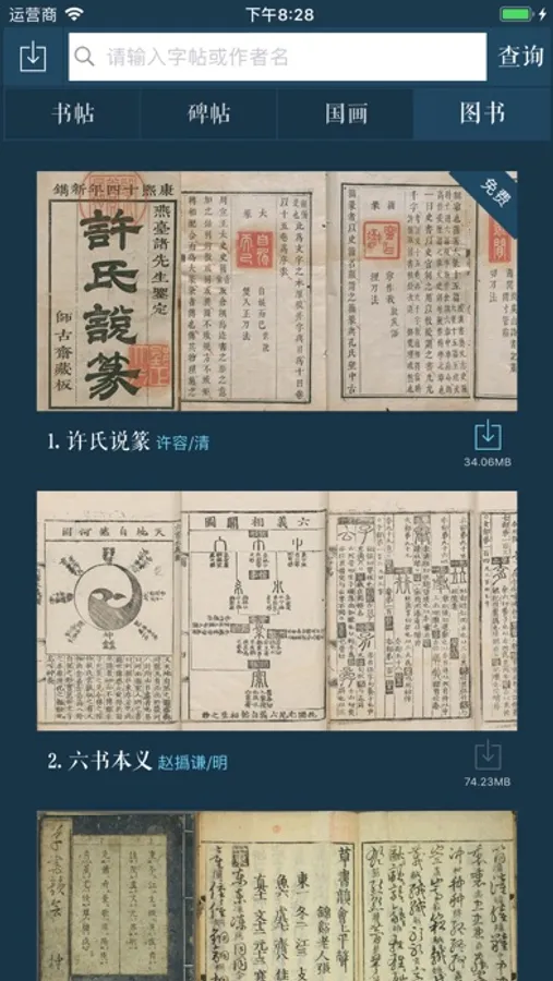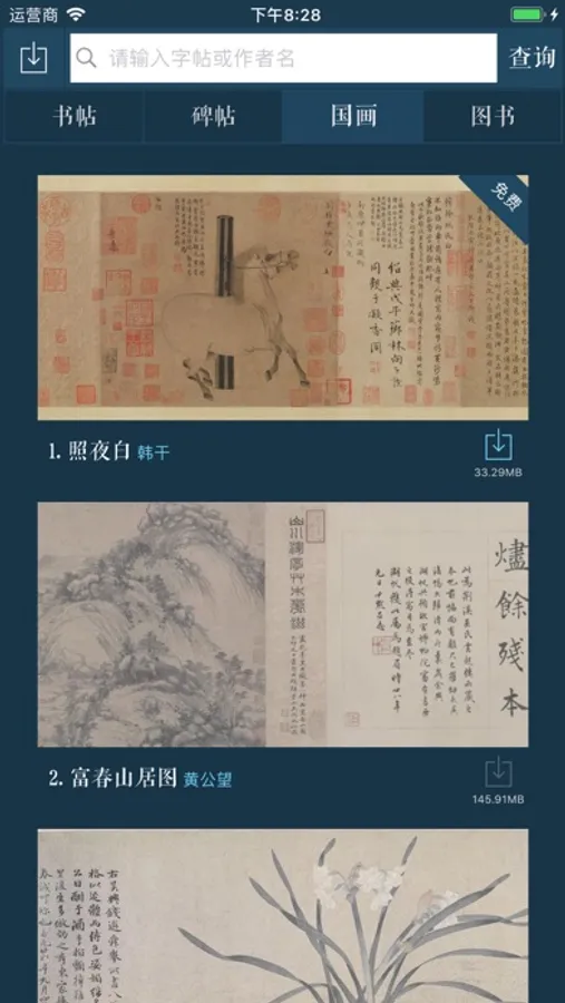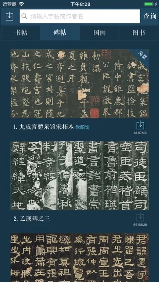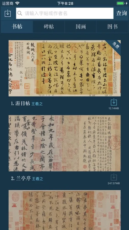 中华十大传世名帖,天下十大行书等经典名作一百多幅。字帖均为高清大图,可以随意缩放,并且支持手写临摹。