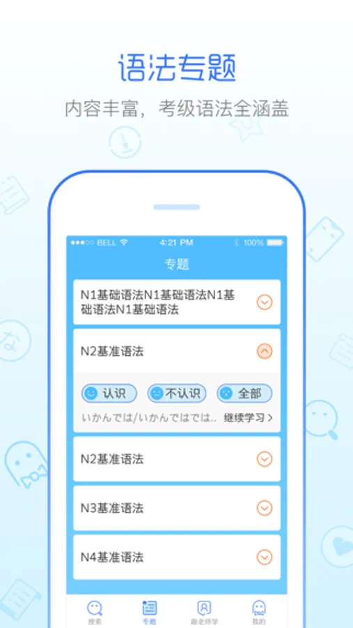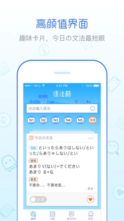 日语语法酷,一款高人气的语法学习助手。语法太多太难懂?我们都帮你总结好啦!
