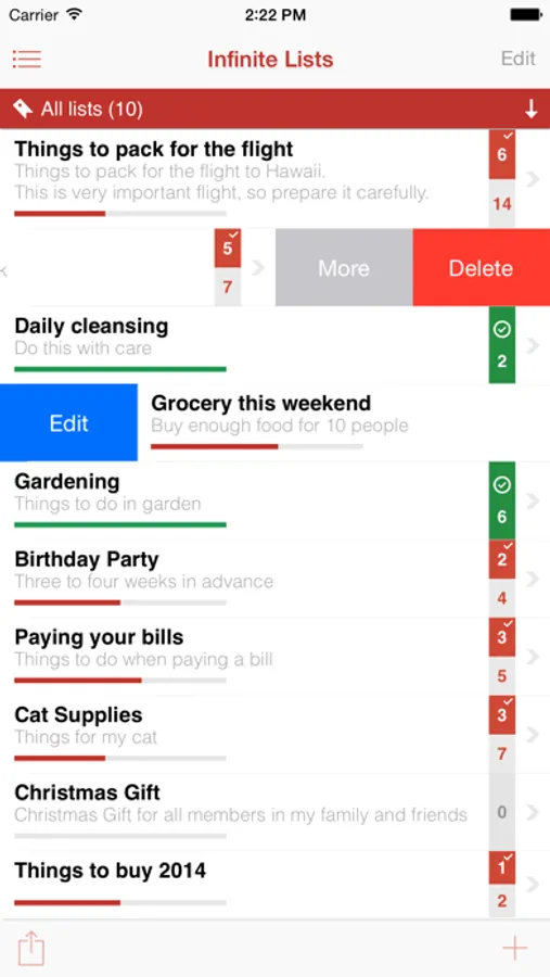 Infinite List is a powerful, intuitive and flexible multi-level checklist app used to organize your daily tasks/todo lists. With Infinite List, you are able to comfortably organize your list whatever ways you want it to be. Especially Infinite List have many features which you cannot find anywhere else like Copy, Move, Filter, Duplicate, Grouping, Sharing, E-mail, Text Message, and so on. Now, organizing your multi-level lists have never been easier.