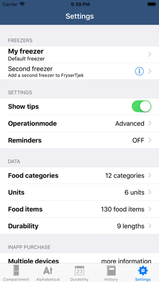 FryserTjek gives you a quick overview over your freezer contents - synchronized on multiple devices, despite AppleID as an in-app Purchase.
