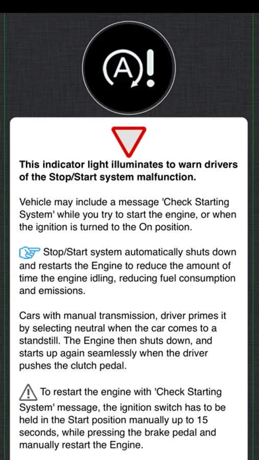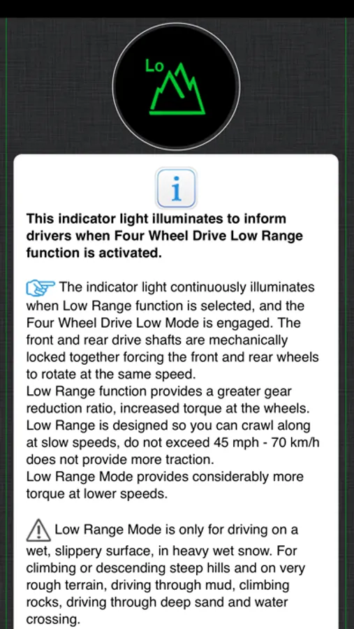 The app features all dashboard warning lights for all Land Rover models, with a detailed description and an explanation.