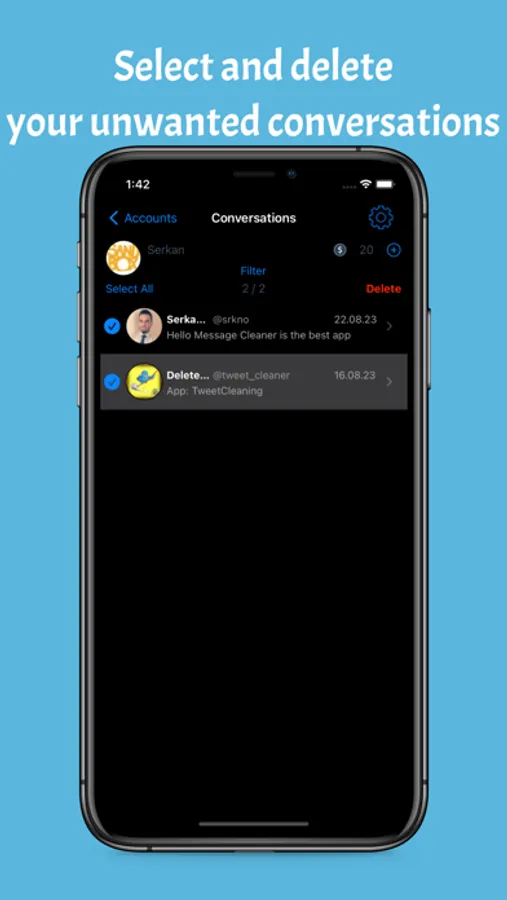 Message Cleaner for Twitter saves you time and empowers you to declutter your Twitter Direct Messages.