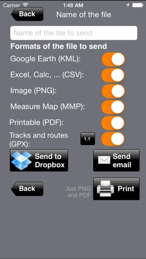 * Export and import of surfaces and routes via e-mail, iTunes, AirDrop and Dropbox.