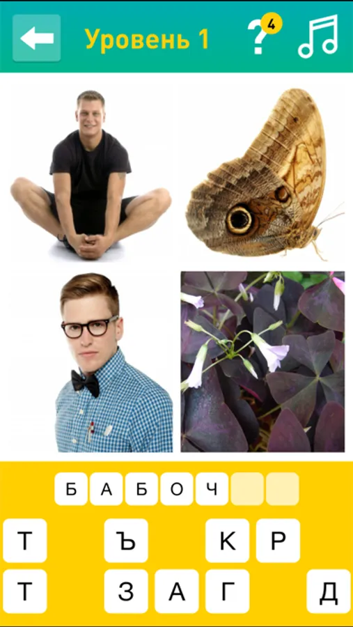 По 4 картинкам (фоткам) нужно отгадать объединяющее их слово.