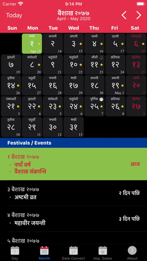 Nepali Calendar Pro is a 160 year multicultural Nepalese Calendar that shows dates in Bikram Sambat (B.S.) with corresponding English dates of Gregorian calendar. This Lunar calendar is the official calendar of Nepal. This calendar system is also followed in many parts of India.