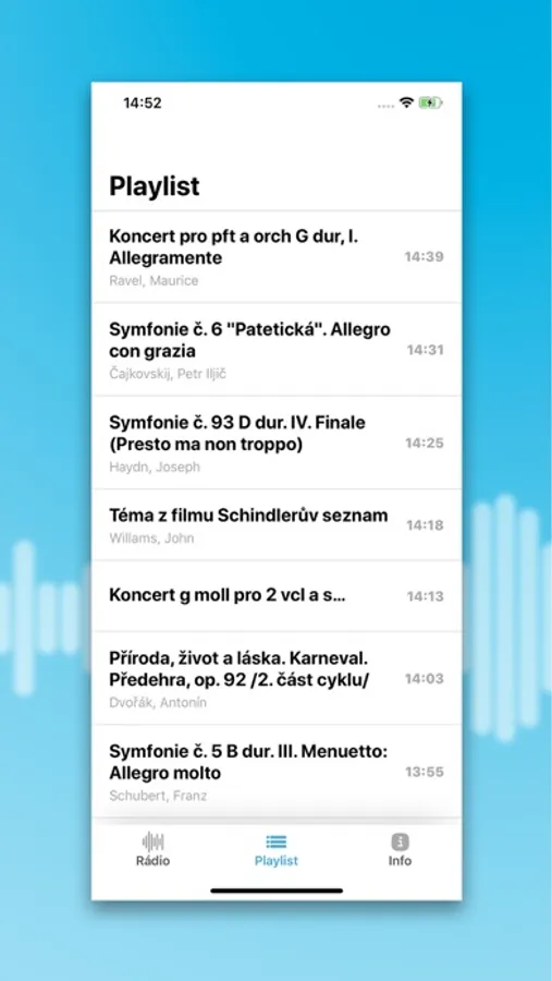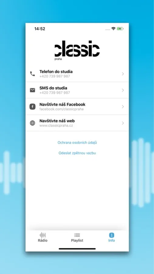 V aplikaci můžete živě poslouchat Classic Praha, najdete zde i přehled odehraných skladeb a důležité kontakty přímo do studia.