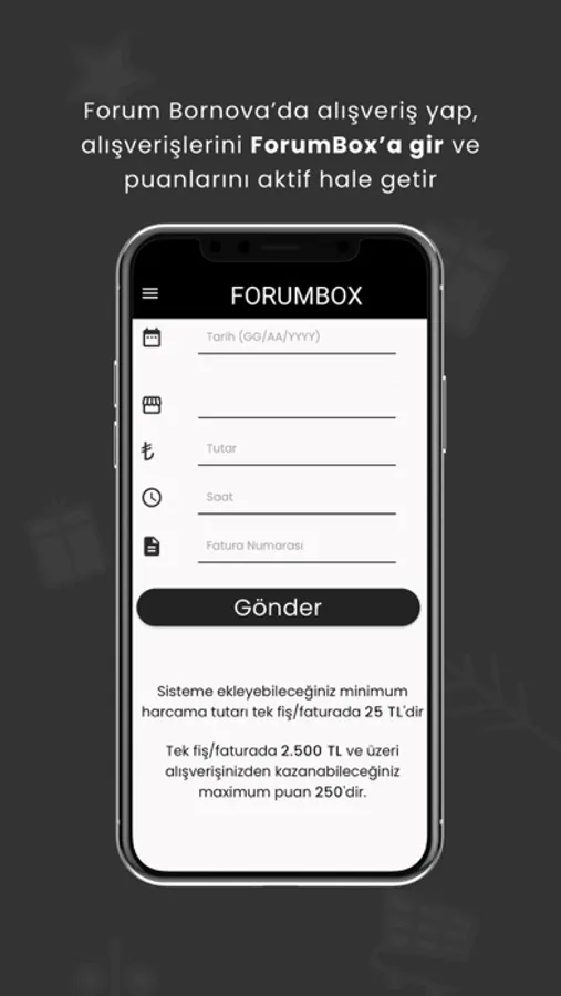 Artık Forum Bornova'da yapacağınız tüm alışverişler Forum Box ile sürpriz hediyelere dönüşüyor! Uygulamayı kullanarak yapacağınız tüm alışverişleri puana çevirebilir, check-in uygulaması sayesinde Forum Bornova'da olduğunuz her gün ayrı bir puan kazanabilirsiniz.