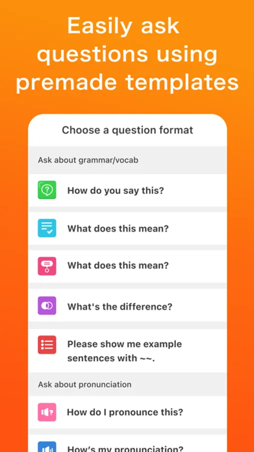 Unlike a dictionary or web search, HiNative gives you customized example sentences, responses to your follow-up questions, and tips to improve your pronunciation. With HiNative, you also get access to the best resource for language learning: native speakers. And as a native speaker yourself, you can help out too!