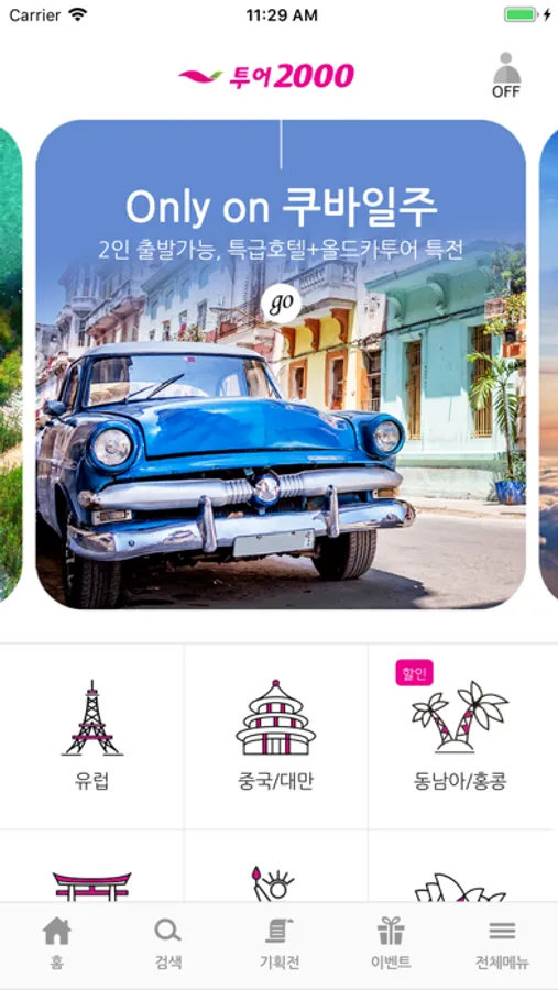 - 여행 최저가와 파격 할인 등 다양한 이벤트가 함께 합니다.