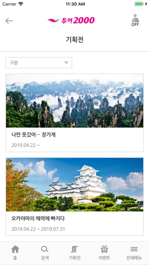 - 패키지 및 자유여행 등 다양한 기획전으로 가고 싶은 여행지역의 다양한 정보를 한 눈에 확인 하세요.
