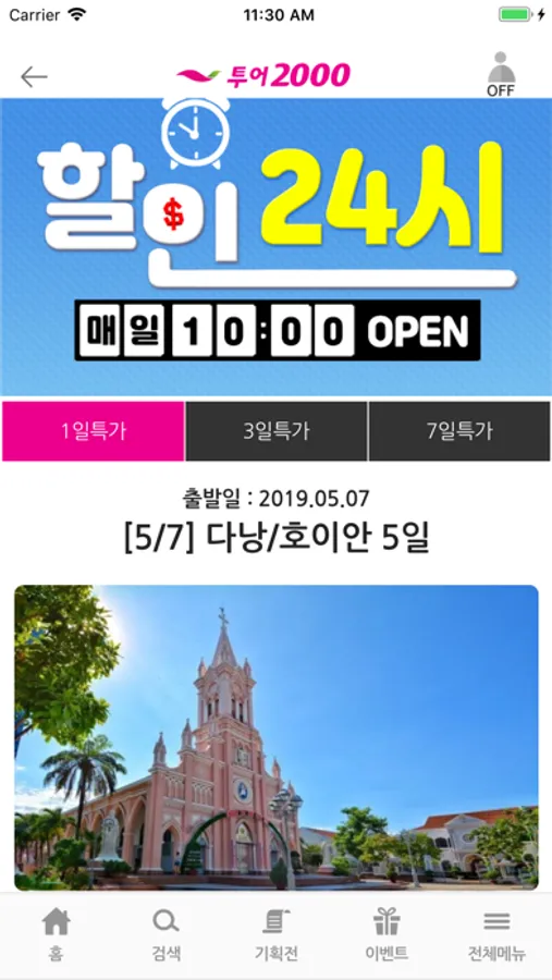 - 1일, 3일, 7일 기준 총 3개의 초특가 여행상품이 여러분의 선택을 기다립니다.