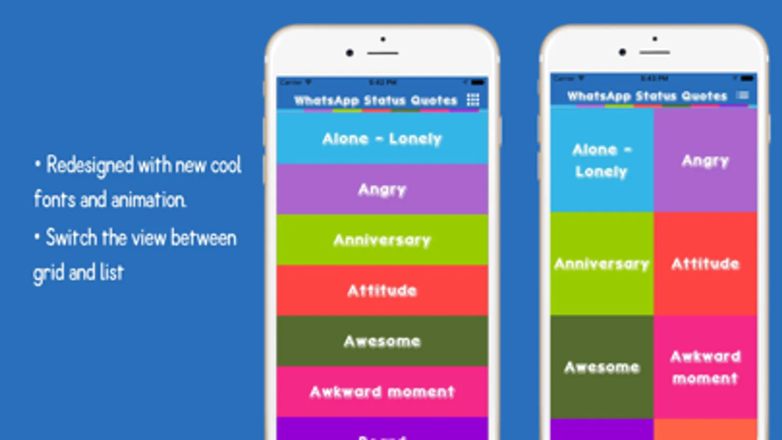 Now with Status Quotes 2.0 you can search for quotes easily from device search and search within application. We have also added widget to this application which will allows you to view daily new quote without opening the application.