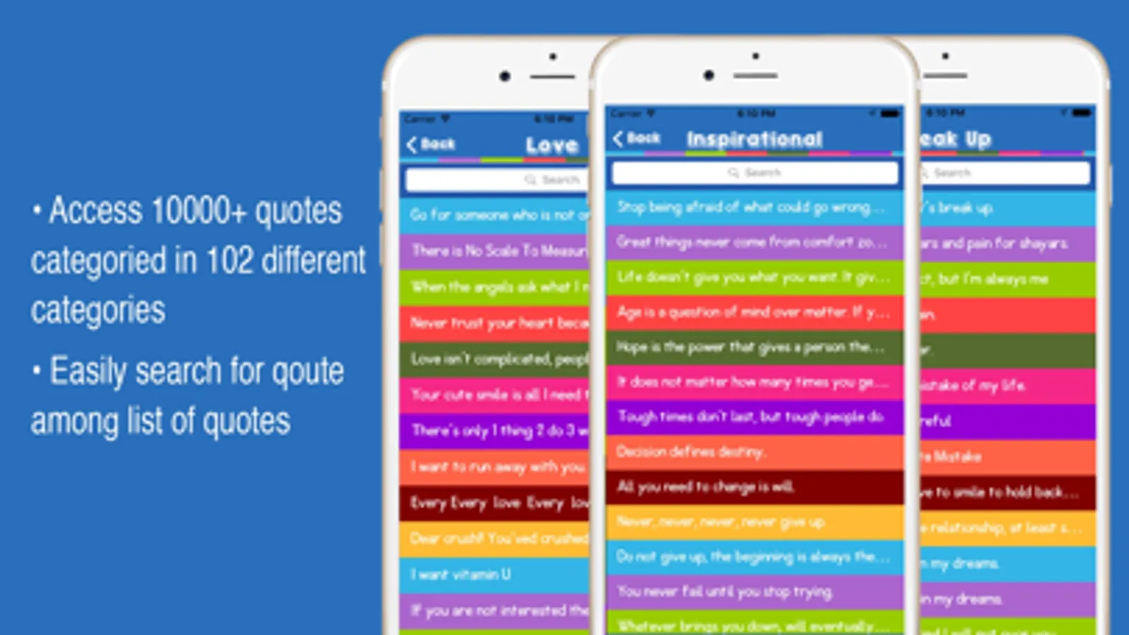 ► 10000+ status quotes divided in 102 categories.