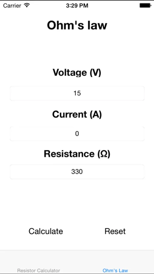 Also included is an Ohm's law calculator, to allow you to calculate the missing value, given two values of voltage, current or resistance.