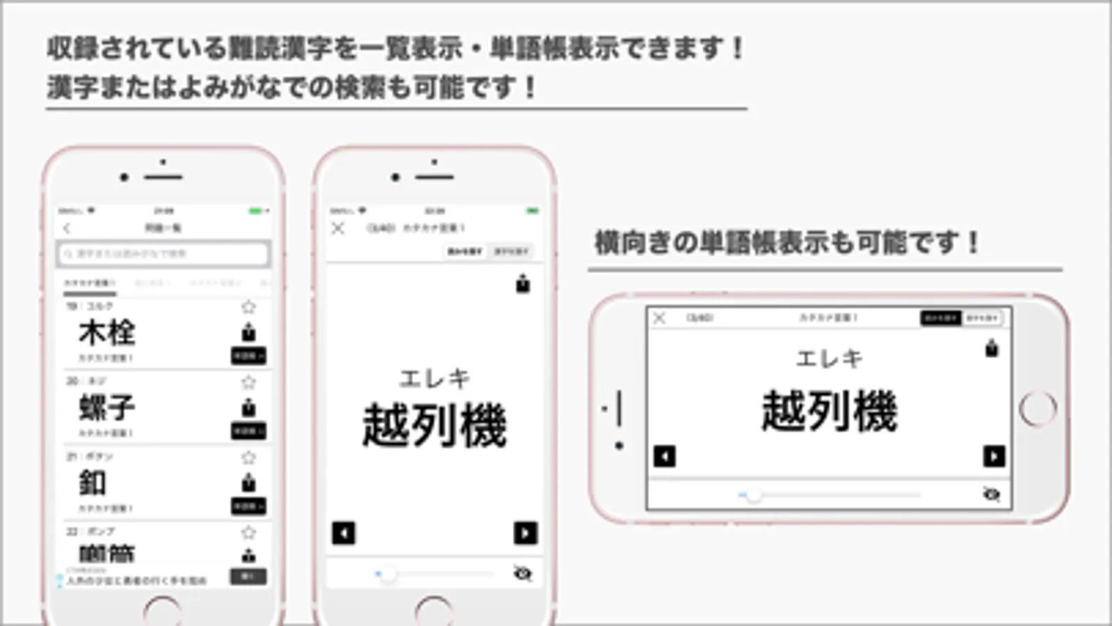 ちょっと難しい漢字から、常識漢字を超える難しい漢字読み方を1320問収録した学習アプリです。