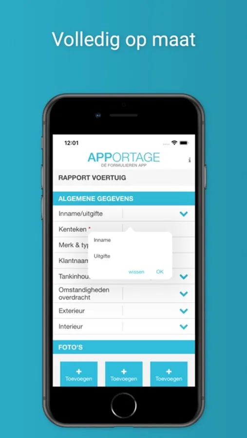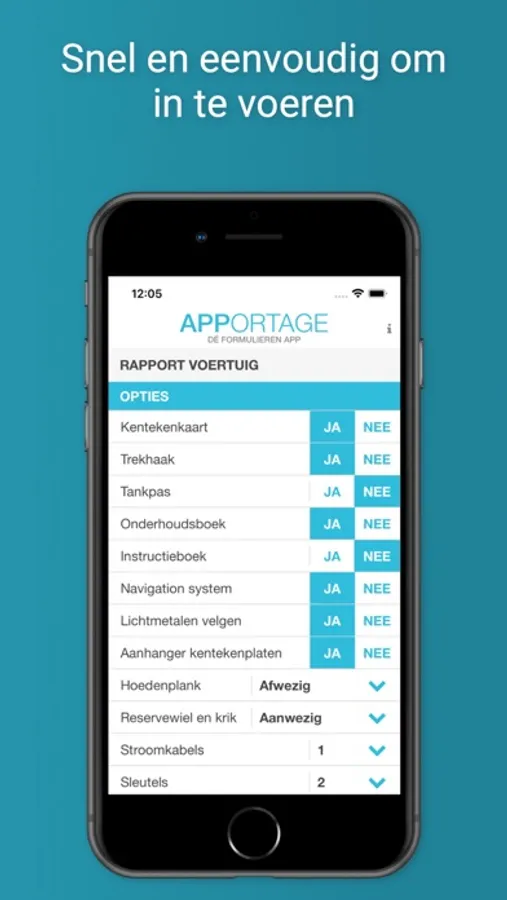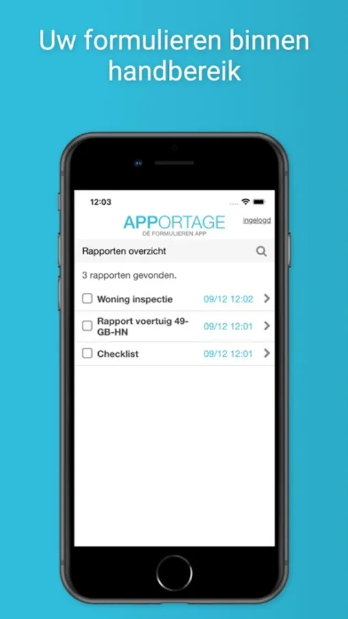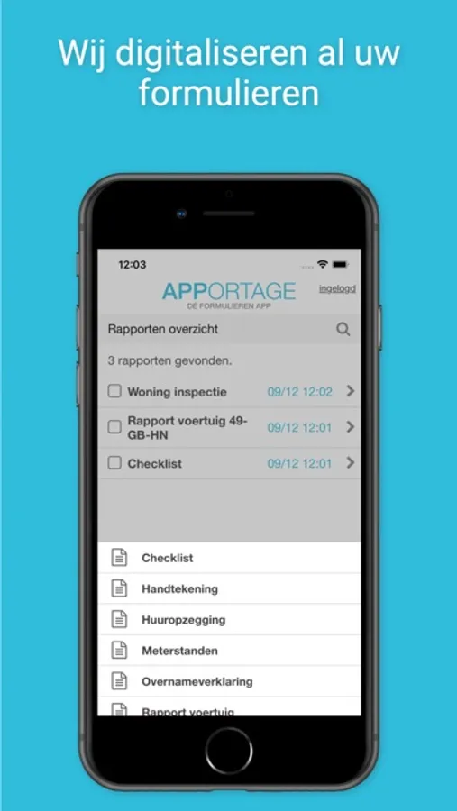 Met Apportage kunt u eenvoudig en snel rapporten maken met smartphones en tablets. Door de handige invoervelden, de mogelijkheid foto's toe te voegen en de mogelijkheid direct op locatie gewoon via de smartphone of tablet een handtekening te (laten) zetten. Er kan vervolgens direct een volledig opgemaakte PDF verstuurd worden. Klaar!