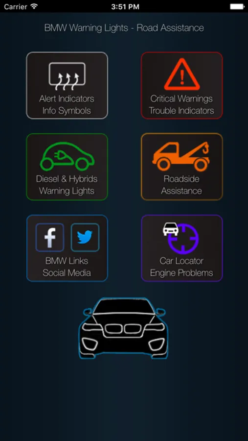 The app helps you identify problem with your BMW, features 468 warning lights and symbols from all newer and older models, with an explanation of the problem.