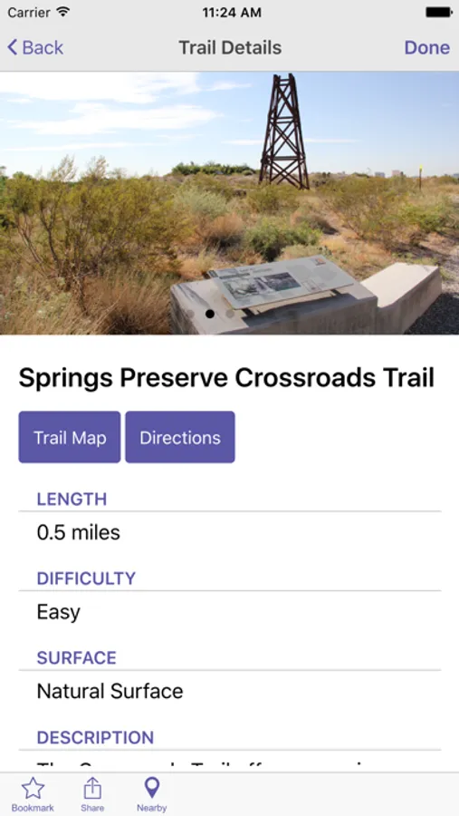 Find all walking, hiking, biking and horse trails in Southern Nevada. With options to customize a search, anyone can locate a trail that is just right for them. Search for trails based on your current location, amenities, level of difficulty and more. Detailed information about each trail is provided as well as beautiful photos. This app includes a bookmark feature to save your favorite trails for future reference.