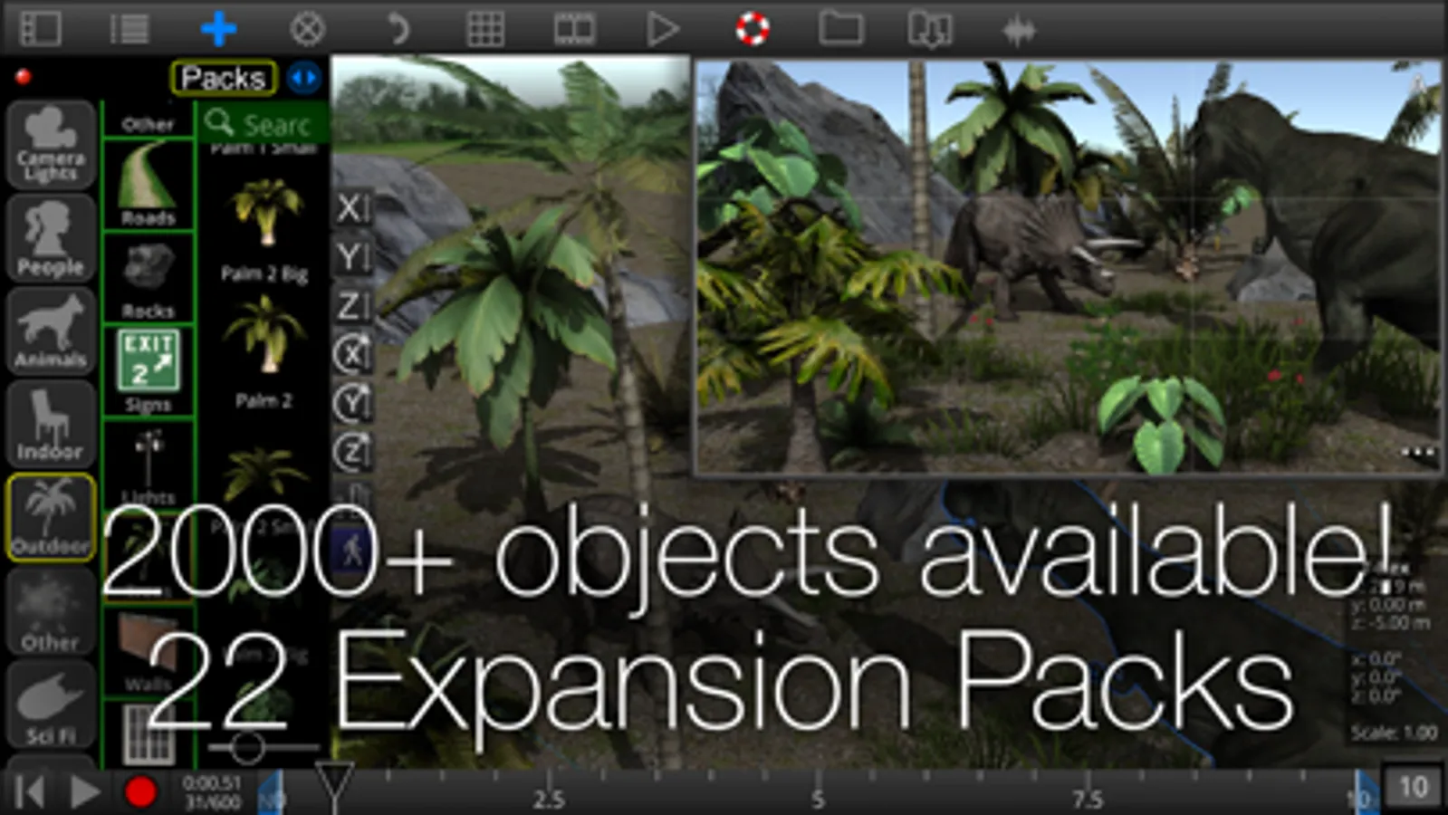 * 2000+ Ranging from furniture, buildings, plants, streets, vehicles, FX and many more. 700+ built-in and a growing library of prop packs (in-app purchase).
