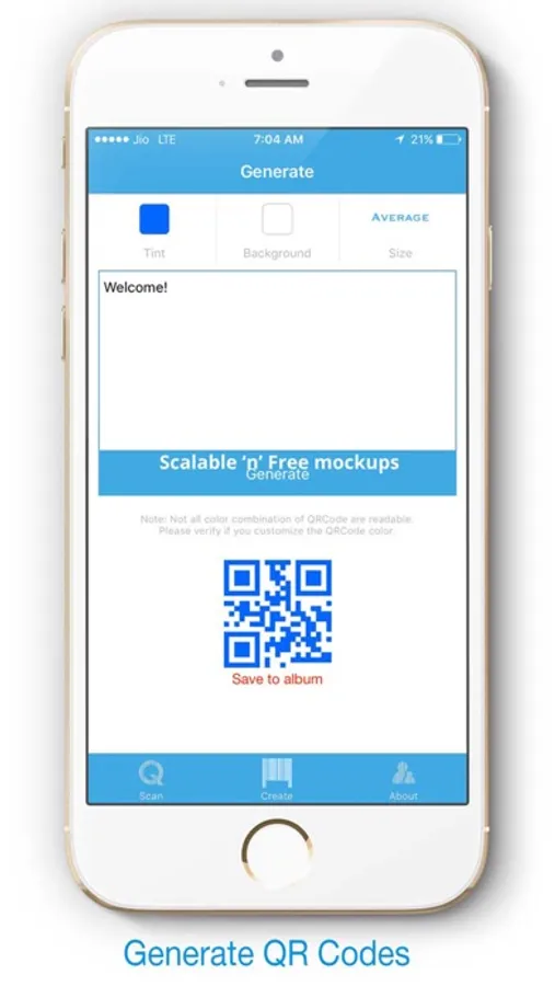 • Create QRCodes with custom colors and sizes.
