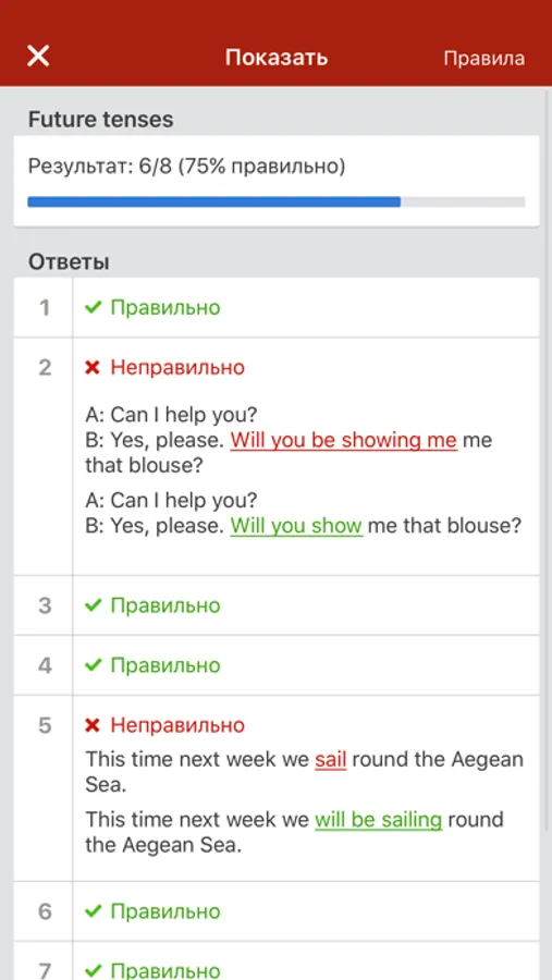 Вы можете практиковать aнглийский язык в 129 упражнениях с 1330 вопросами.