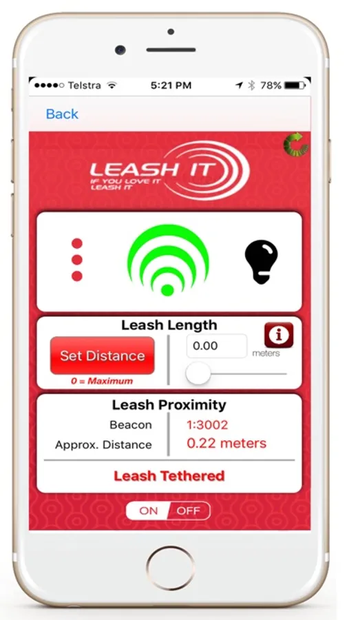 The Leash It App and Leash beacon also allows the owner to set a perimeter around themselves and their item, if the item leaves the leashed area it will set off a warning alarm on their mobile, giving them a chance to recover the item before it disappears.