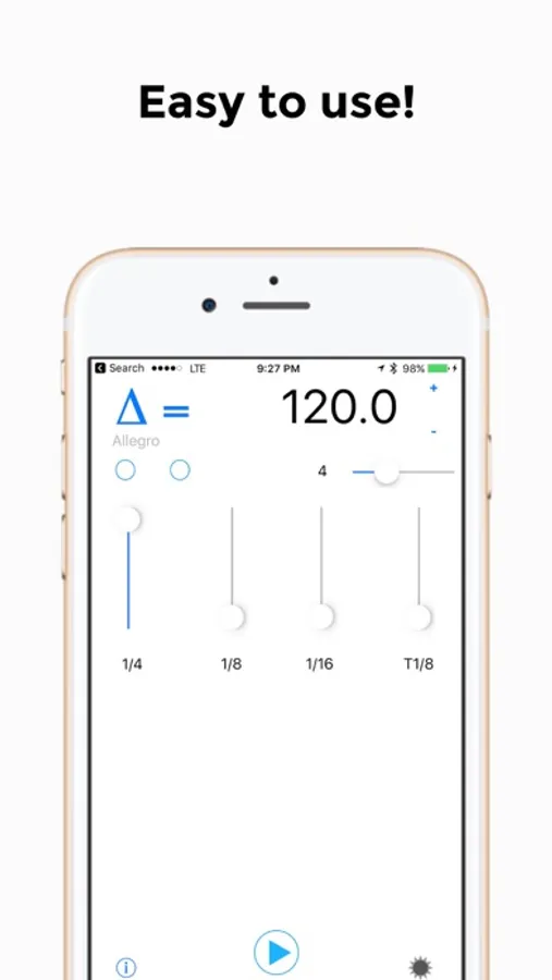 A simple but capable metronome reminiscent of an older unit that is highly prized. Easily create complex patterns with tenths of a tempo entry. Tap tempo and direct typing make it easy to find and set a tempo. Mix clicks with the associated volume sliders.