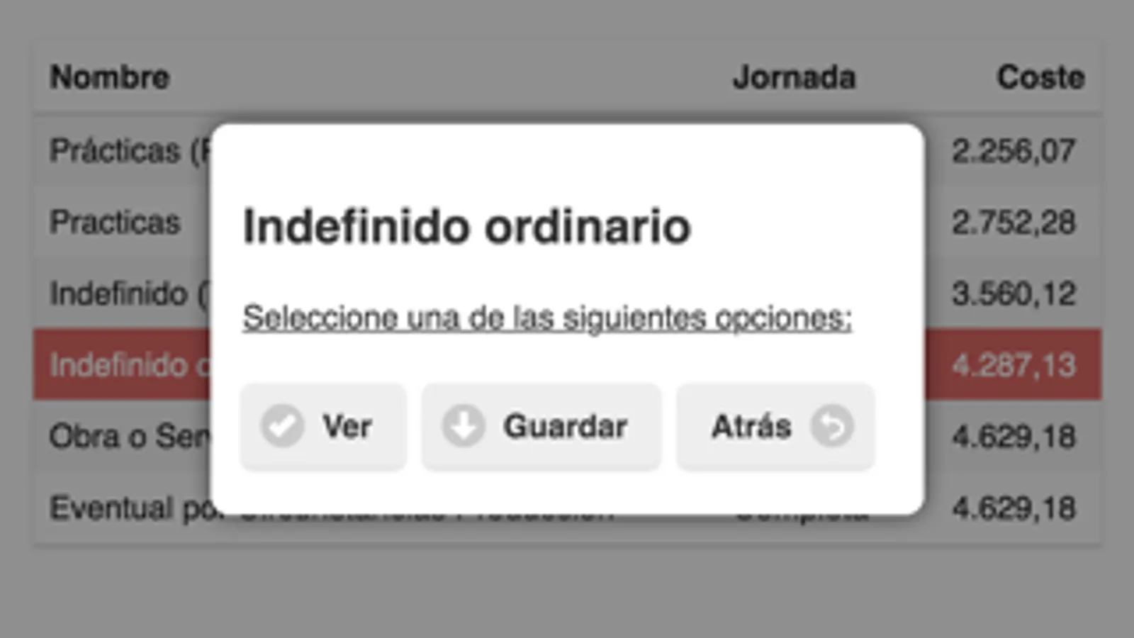 Esta herramienta es sin duda la mejor herramienta que le puede servir de base al empresario para tomar decisiones en el momento de formalizar un contrato de trabajo, ya que va a obtener una comparativa de todos los contratos que se pueden hacer y lo que suponen de coste salarial cada uno de ellos.