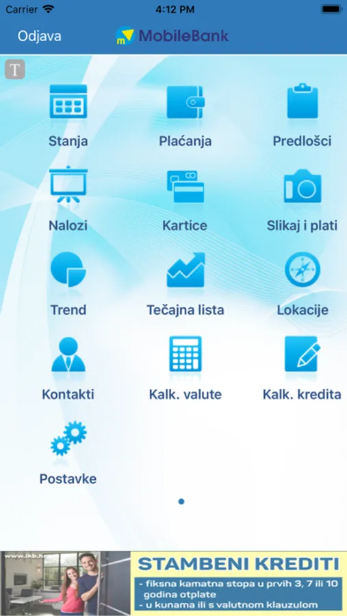* Postavke - promjena jezika aplikacije, promjena PIN-a, promjena e-mail adrese, moji uređaji – dodavanje novog uređaja za korištenje aplikacije i autorizacija otiskom prsta.
