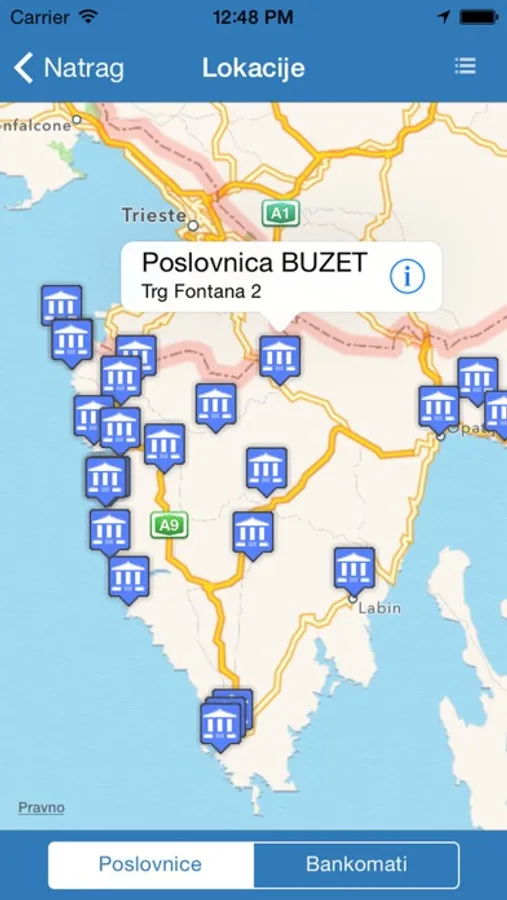 * Pregled poslovnica i bankomata banke kao i navigacija do odabrane lokacije