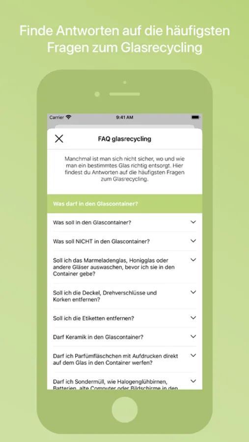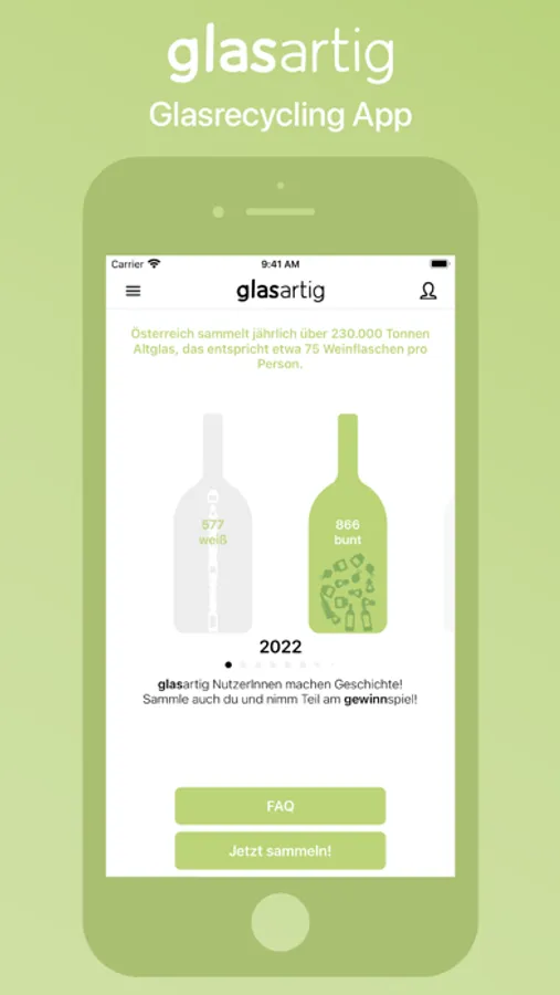 Neben dem Spielfaktor, der Gewinnchance und einem Gemeinschaftsprojekt für Umwelt- und Klimaschutz bringt dir die App wertvolle Informationen und interessante Fakten zum österreichischen Glasrecyclingsystem. Antworten auf die häufigsten Fragen findest du in den FAQs. So wirst du schnell zum Glasrecycling Profi!