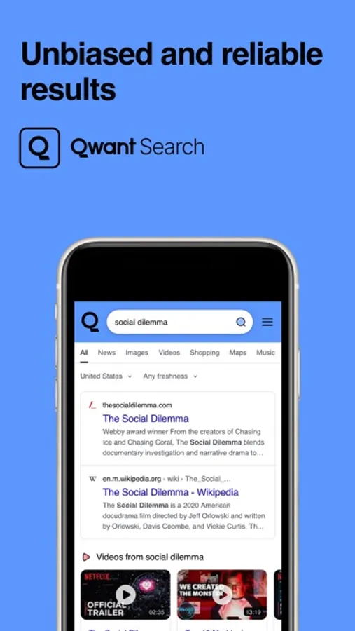 Since 2013, Qwant has been the search engine that, by default, does not collect users’ personal data. With the Qwant app, your search history stays private and belongs to you, and your data is never sold. Unlike other search engines, we have no idea what you’re searching for online, and that’s exactly how it should be.