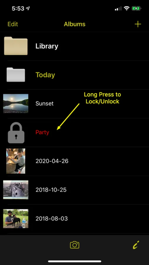 - lock/unlock access to albums by doing a long press over the album row (uses TouchID to unlock)