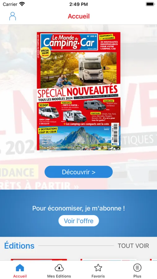 Téléchargez gratuitement l’application du magazine Le Monde du Camping Car qui vous permettra d'acheter les versions numériques, enrichies de vidéos, de photos et de textes. Retrouvez également les anciens numéros ainsi que les hors-séries thématiques.