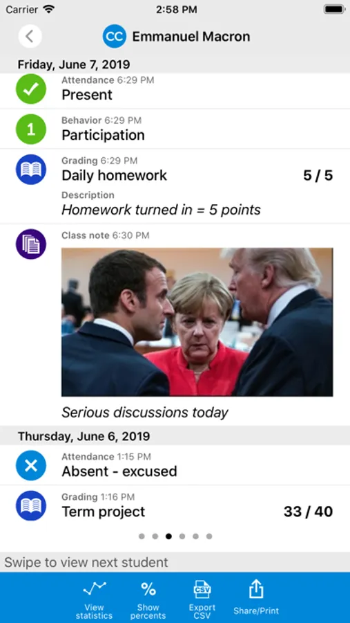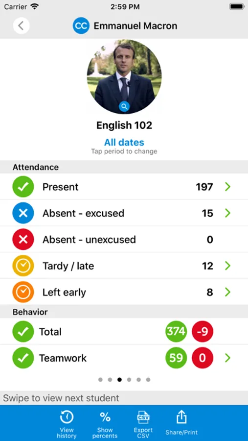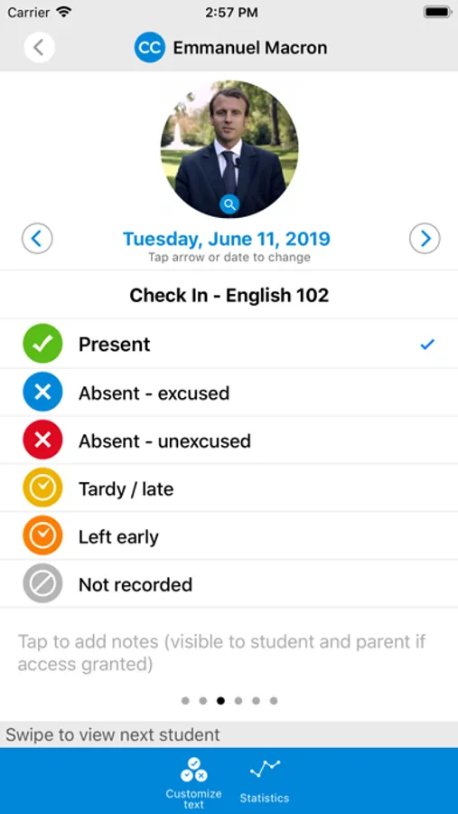 - Record student attendance by scanning student IDs with bluetooth scanner