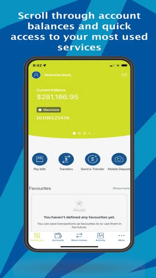 Manage your money when and where you want with our fresh, modern, redesigned mobile app. Complete with all the features you would expect such as the ability to view account balances, pay bills, deposit cheques and send Interac eTransfers. Your digital experience is further enhanced with innovative features such as financial overview, favorite transactions and the ability to customize accounts and personalize your profile.