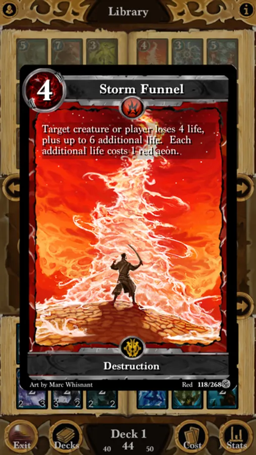 Easily add cards to your deck using the deck editor. Use color, type and rarity filters to find the cards you want. Each character you create can keep up to ten decks and can select different card backs for each.