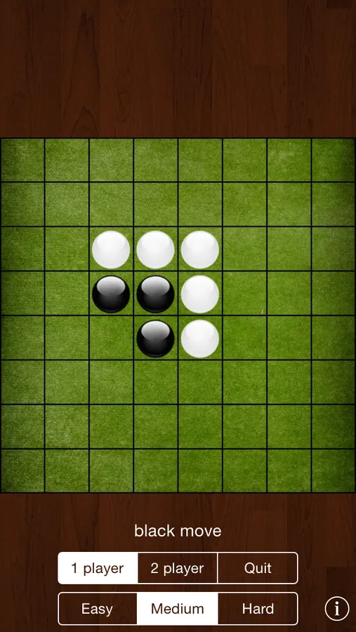 Playing against Mr Turn in 1 player mode, Easy level is perfect for beginners. Medium provides a challenge for most normal players, and Hard will defeat all but the best players.