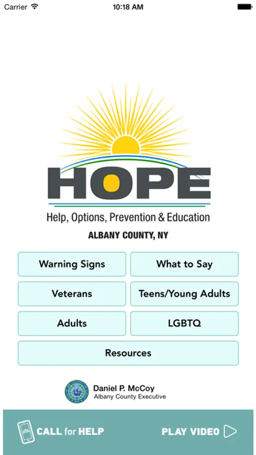 The Albany County HOPE suicide awareness and prevention app is designed to help users easily access and recognize the signs of suicide in friends and family and get them the help they need, fast. It’s not a substitute for professional diagnosis and treatment, but rather a “first line of defense” that offers people some solid information and useful tools that they can use to help someone make it through a difficult time.
