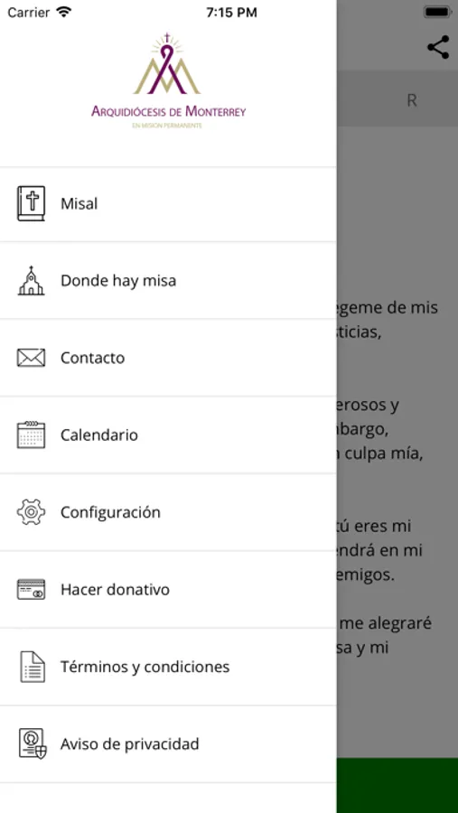Esta aplicación busca ayudar al católico a seguir las lecturas de la misa de una manera sencilla y sin distracciones, también se ofrece una reflexión de la Palabra de Dios que nos ayude a conocer mejor las Escrituras. Estas reflexiones son escritas por sacerdotes de la Arquidiócesis de Monterrey.