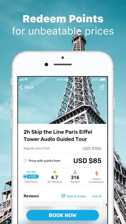 Discover and book over 30,000 activities at exclusive prices thanks to our global 'Price Guarantee'. Climb the Eiffel Tower, go skydiving, book transport and skip the queue with instant confirmation and trusted customer reviews. Just tap the Experiences tab to see what’s nearby or add your next destination to discover things to do before you arrive.